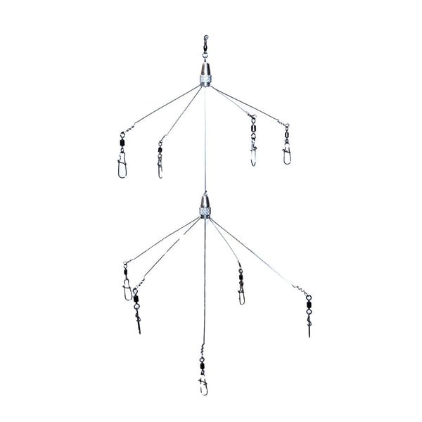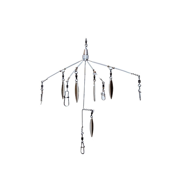 Maximum flash. Maximum attraction. The ultimate 9-wire umbrella rig built to call in big fish from a distance.